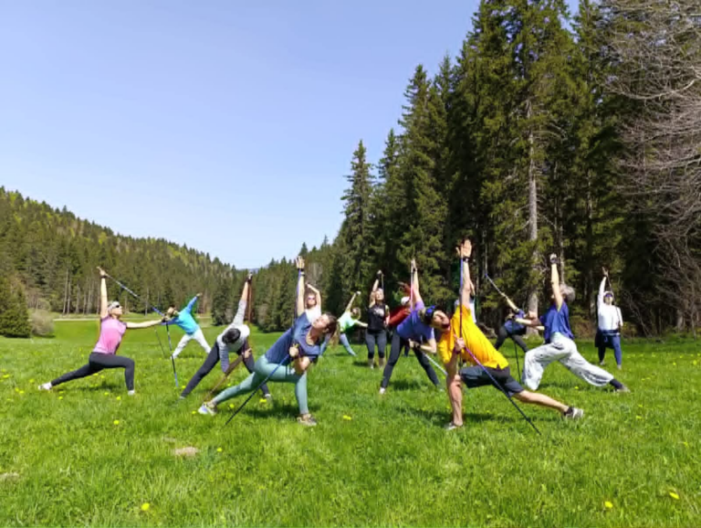 Réfléchissant depuis plusieurs années à une activité yogi à pratiquer et à transmettre, dans un contexte diffèrent du yoga en général, je me suis formée en Nordic Yoga (R). Réalisé en pleine nature, muni de bâtons nordiques, il conserve le rythme et le dynamisme de façon consciente. Nous explorons et redécouvrons notre manière de marcher et de respirer, plus libres, en pleine conscience.